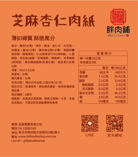 胖肉鋪帶您感受台灣手工豬肉紙的極致魅力!芝麻杏仁肉紙與櫻花蝦杏仁肉紙,每一口都是幸福的味覺享受,越吃越上癮,現在就來體驗吧!