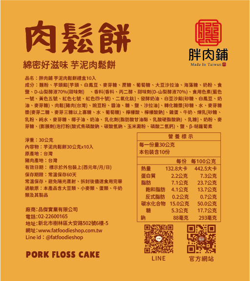 獨創類鳳梨酥餅皮口感、肉鬆餡入口即化不乾澀的肉鬆餅,台灣第一創始品牌『胖肉鋪』