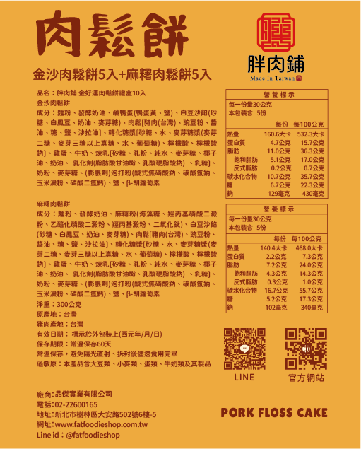 獨創類鳳梨酥餅皮口感、肉鬆餡入口即化不乾澀的肉鬆餅,台灣第一創始品牌『胖肉鋪』